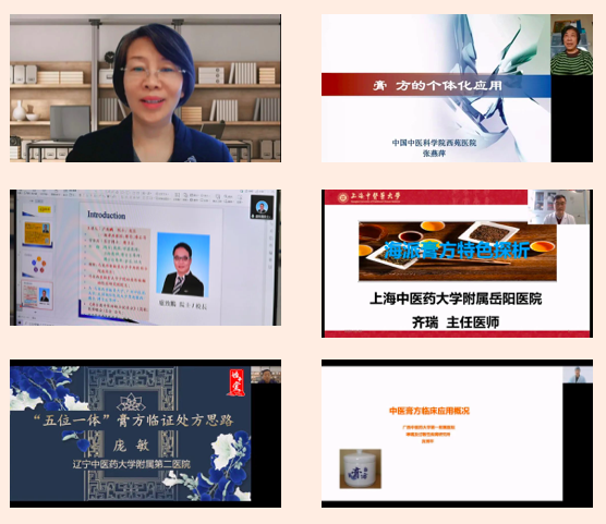 開幕式結(jié)束后,大會開展了線上學(xué)術(shù)報告和學(xué)術(shù)交流活動。董瑞會長做了《中醫(yī)膏方概論》的學(xué)術(shù)報告;北京中醫(yī)藥大學(xué)蘇慧萍教授、中國中醫(yī)科學(xué)院西苑醫(yī)院張燕萍教授、港澳臺中醫(yī)醫(yī)師聯(lián)合促進(jìn)會總會會長盧致鵬教授、上海中醫(yī)藥大學(xué)岳陽中西醫(yī)結(jié)合醫(yī)院齊瑞教授、遼寧中醫(yī)藥大學(xué)附屬第二醫(yī)院龐敏教授、廣西中醫(yī)藥大學(xué)第一附屬醫(yī)院賓博平教授六位中醫(yī)膏方專業(yè)委員會副會長分別作了《膏方防治慢阻肺的組方用藥特點》《膏方的個體化應(yīng)用》《脾胃系統(tǒng)(慢性胃炎疾病)的中西醫(yī)論述臨床觀察與證型研究》《海派膏方的特點》《膏方臨床應(yīng)用思路》《中醫(yī)膏方臨床概論》的學(xué)術(shù)報告,并與在線專家學(xué)者進(jìn)行了互動交流。中醫(yī)膏方專業(yè)委員會第二屆理事會換屆會議暨第五屆學(xué)術(shù)年會取得了圓滿成功。
