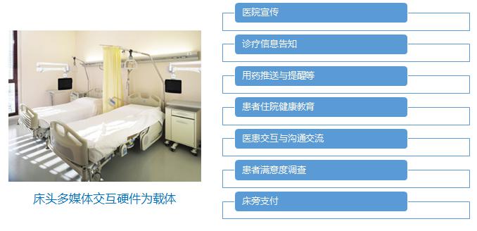 患者住院信息服務系統(tǒng),是利用4G/5G專網(wǎng)或院內WIFI搭建的軟硬件一體化床旁系統(tǒng),以智能平板+便攜支架為硬件載體,為患者提供全方位住院信息服務,可以有效提高醫(yī)護患溝通效率,在降低患者與醫(yī)護人員的接觸次數(shù)的同時更可以提高患者住院服務感受,提高診療依從性、緩解住院焦慮感,尤其適合隔離病房使用。