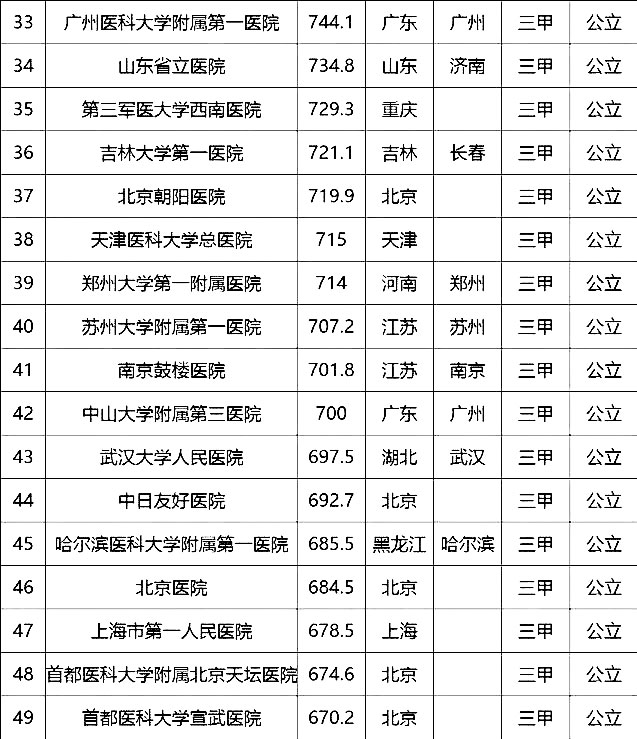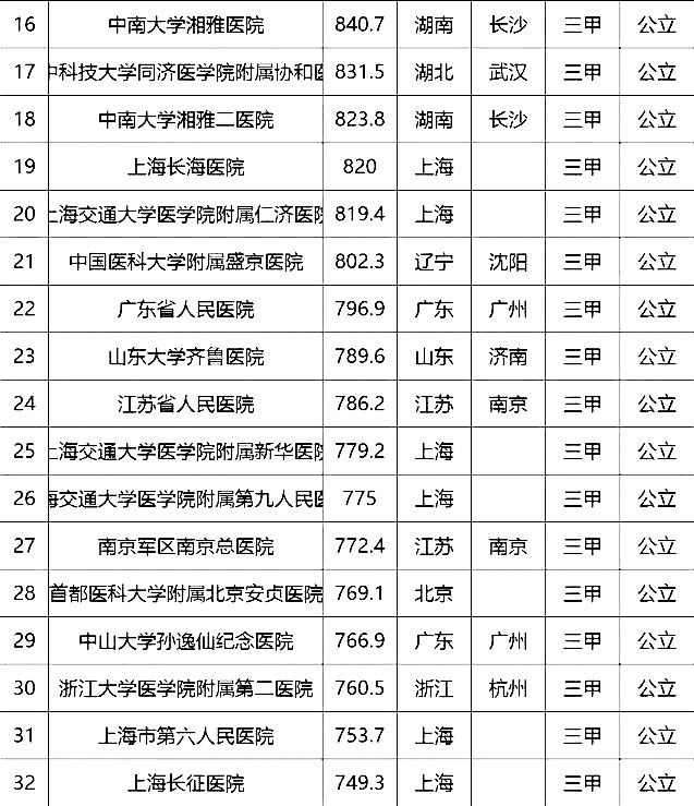 “100強”榜單中,入圍最多的三個省市分別是北京(16家醫(yī)院)、上海(13家醫(yī)院)、廣東(9家)。“100強”共覆蓋32個城市,包括4個直轄市(36家醫(yī)院)、23個省會城市(59家醫(yī)院)、5個地級市(5家醫(yī)院)??傮w看,城市的醫(yī)院平均得分和上榜機構數(shù)有一定的相關性,上榜機構數(shù)多的城市一般得分均值較高,說明這些城市醫(yī)院整體實力較高。