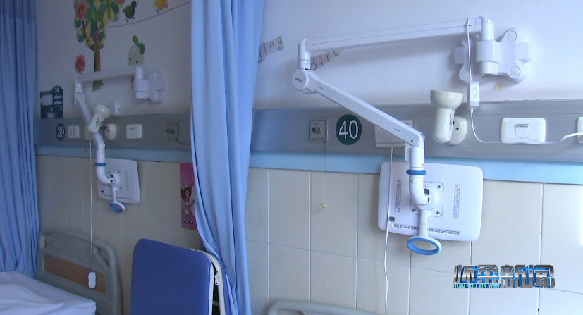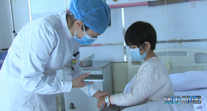 在兒科病房內(nèi),前來換藥的護士打開床旁照護系統(tǒng),為小患者挑選喜歡的動畫片,在確認患者身份后用手持PDA掃描患者腕帶上的二維碼,識別病例等信息并登記換藥情況。有了床旁照護系統(tǒng)的動畫轉(zhuǎn)移注意力,小患者不在緊張、害怕,整個換藥過程十分平穩(wěn)、迅速。