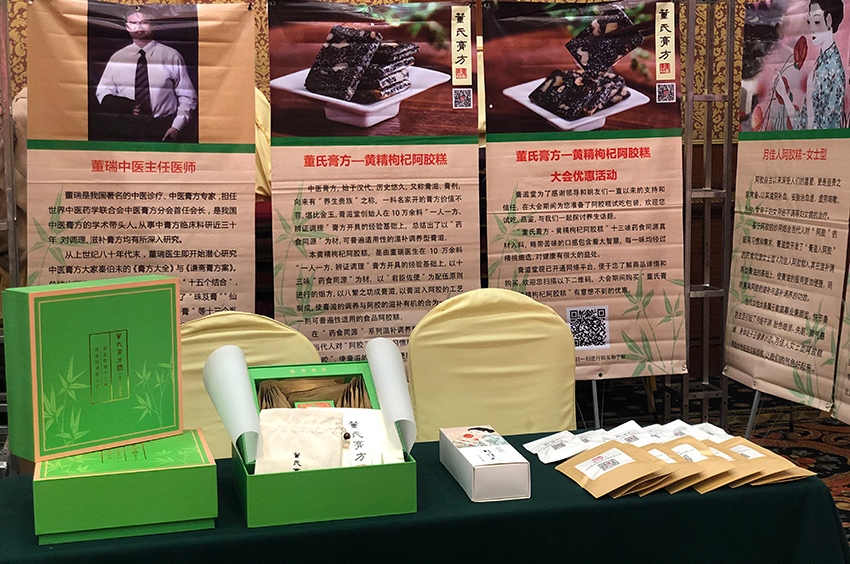 膏滋堂作為本次論壇的承辦商對此次論壇進行了全方面的跟蹤和報導(dǎo)。并攜帶《董氏膏方-黃精枸杞阿膠糕》、《月佳人-女士型阿膠糕》兩款藥食同源的食性價值很高的阿膠糕參會。董氏膏方-黃精枸杞阿膠糕是董瑞中醫(yī)主任醫(yī)師臨床三十年得方,從上世紀(jì)80年代末,其潛心研究中醫(yī)膏方大家秦伯未的《膏方大全》與《謙齋膏方案》??偨Y(jié)出了膏方防治疾病與保健的“十個指導(dǎo)思想”和 “十五個結(jié)合”,形成了董氏中醫(yī)膏方思想體系,研發(fā)了“珠芨膏”、“仙芪扶陽膏”、“養(yǎng)顏美容膏、“延年益壽膏”“黃精枸杞阿膠糕”等30個系列膏方,積累了上萬例中醫(yī)膏方防治慢性疑難病及養(yǎng)生保健經(jīng)驗,為我國的中醫(yī)膏方慢性病防治及亞健康保健作出了貢獻。董瑞先生是我國著名的中醫(yī)膏方專家,擔(dān)任世中聯(lián)中醫(yī)膏方分會首任會長,是我國中醫(yī)膏方的學(xué)術(shù)帶頭人,積極開展中醫(yī)膏方“一帶一路”世界交流活動,主持了首屆APEC雁棲湖國際中醫(yī)膏方高峰論壇及“一帶一路”中匈雁棲湖國際中醫(yī)膏方高峰論壇,讓世界了解了中醫(yī)膏方。